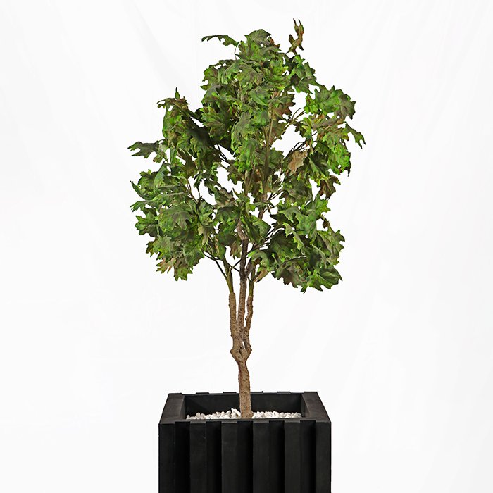 The Artificial Maple Tree features dense maple-style foliage with natural green tones and softly textured leaves that create a full, organic appearance. The branching is well-distributed, giving the tree a balanced shape that feels natural and visually rich.