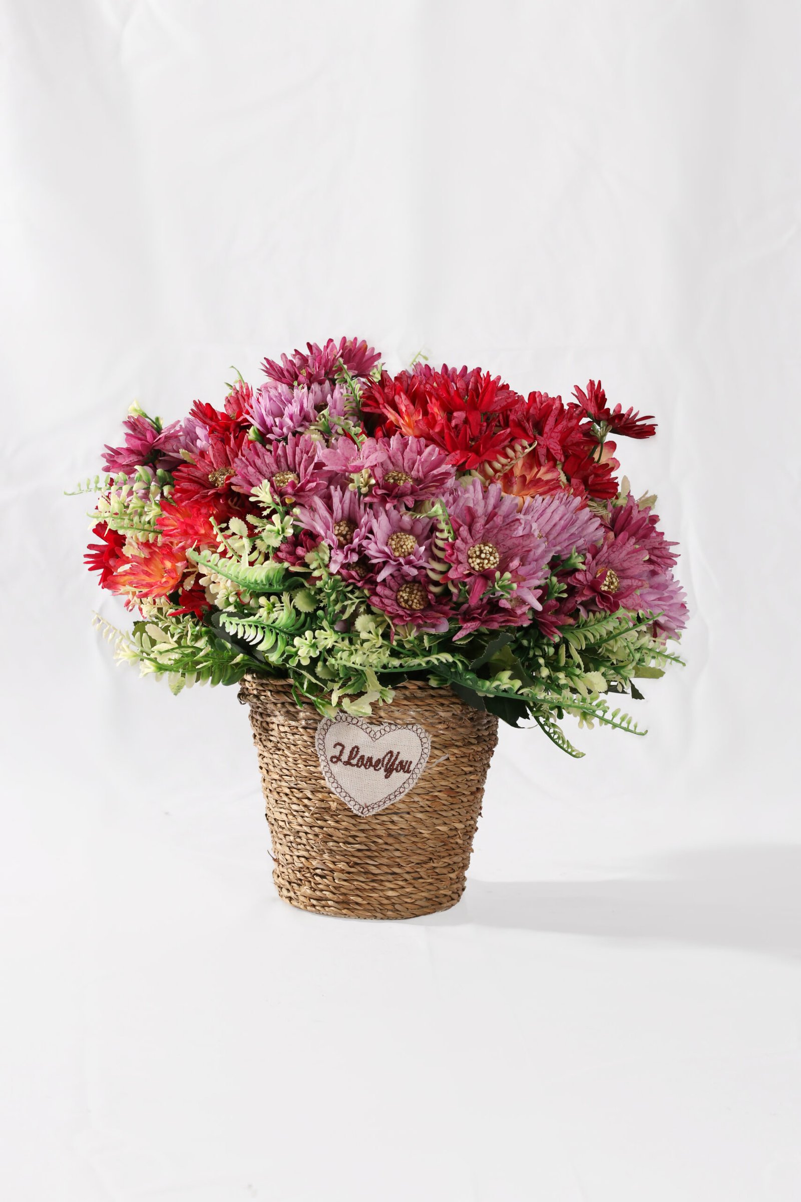 The Big Straw Pot is professionally crafted to offer a high-impact, artisanal presence with zero maintenance. Its generous profile is enhanced by a delicate heart-shaped canvas patch featuring “I Love You” typography, making it the definitive choice for romantic gift arrangements, farmhouse-themed mantels, and organic professional suites.