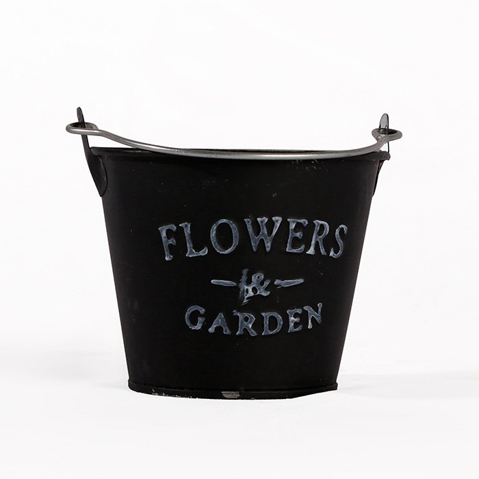 Vintage Pail Silhouette: Features a classic, tapered bucket design with a functional silver-tone wire handle that adds immediate structural character.