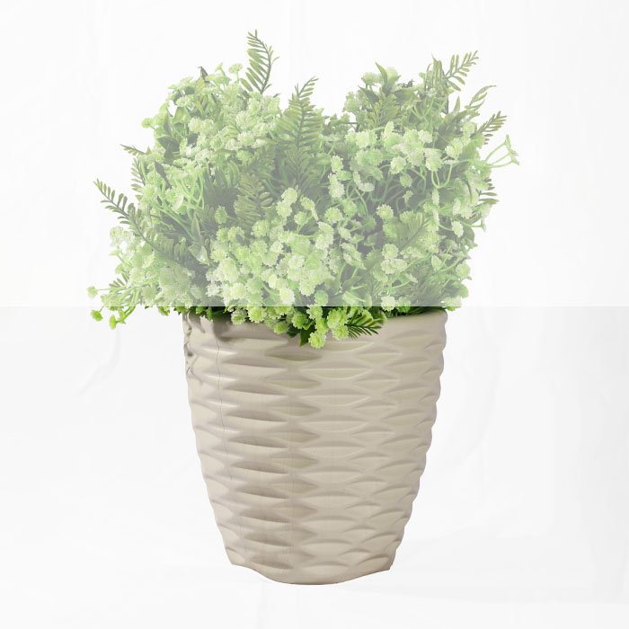 The Diamond Pot – 22 cm features a compact, tapered design with a distinctive diamond-textured surface that adds subtle depth and a modern geometric feel. Its light neutral finish keeps the look clean and versatile, allowing the greenery to stand out naturally.