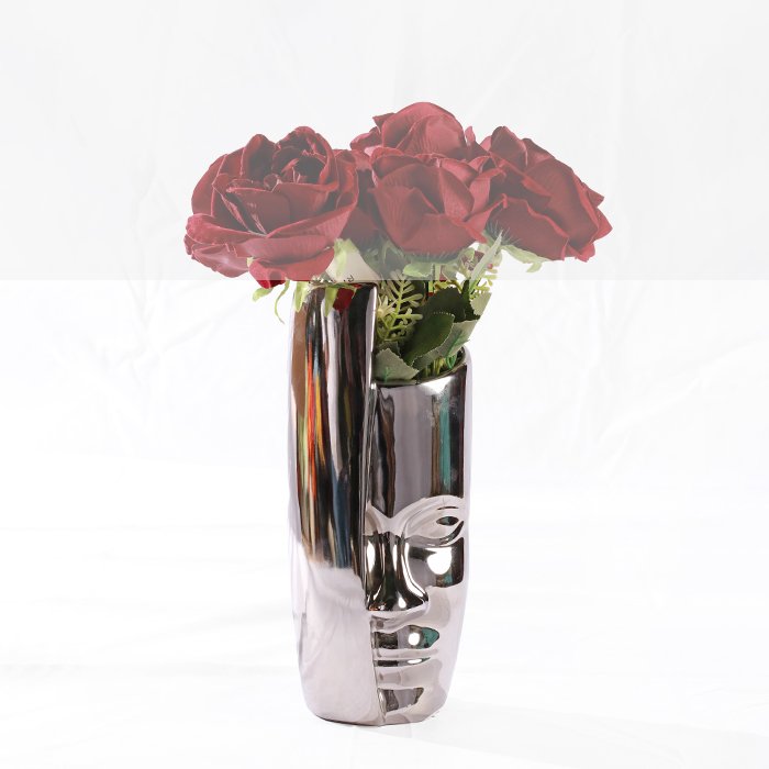Elevate your interior design with the Facial Porcelain Silver, an expertly crafted decorative vessel that blends bold avant-garde silhouettes with a high-status, reflective finish. This piece features a unique, sculptural face-inspired profile that provides a sophisticated and artistic foundation for botanical arrangements.