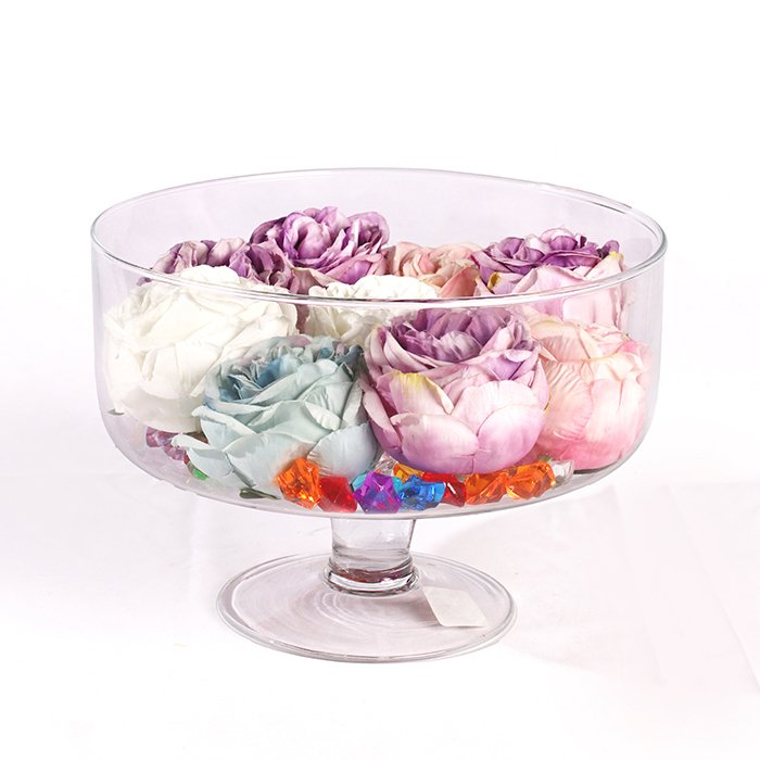Create a stunning, multi-layered centerpiece with the Glass Plate for Rose. This expertly designed decorative vessel features a sophisticated pedestal silhouette with a wide, shallow basin, providing a high-status foundation for artistic botanical displays.