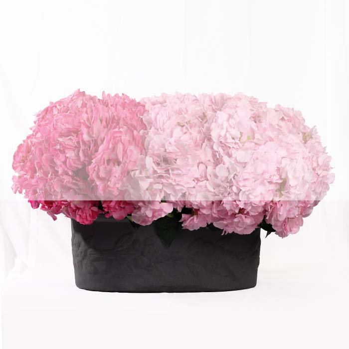 The Gray Rectangular Acrylic Pot features a medium-sized rectangular form with a smooth, stone-textured gray finish that gives it a clean and contemporary appearance. Its structured shape provides a stable, understated base that complements the floral arrangement elegantly.