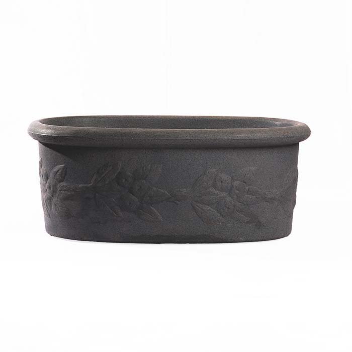 • Rectangular acrylic pot with smooth stone-textured gray finish