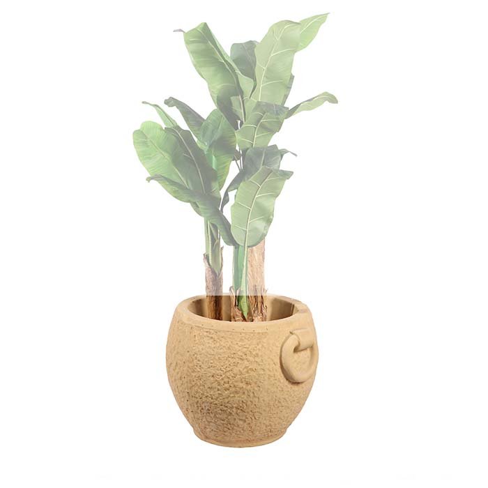 The curved body is complemented by subtle molded detailing on the side, adding character without overpowering the design. The overall form feels sturdy and well-balanced, making it a refined decorative base that enhances the plant while maintaining a calm, natural aesthetic.