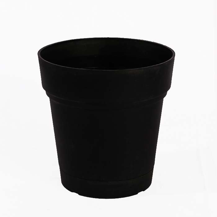 • Classic round plastic pot with a minimalist design