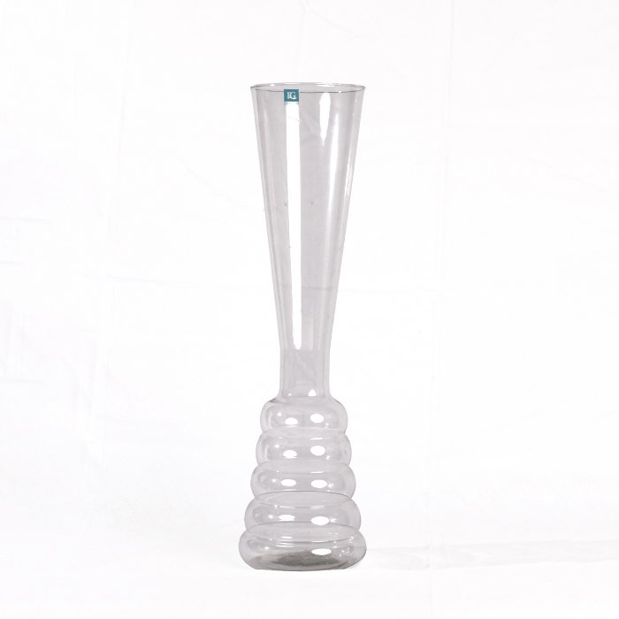 Structural Ribbed Foundation: Adorned with a series of tiered horizontal rings at the base, adding immediate visual depth and a sense of weighted stability to the clear glass design.
